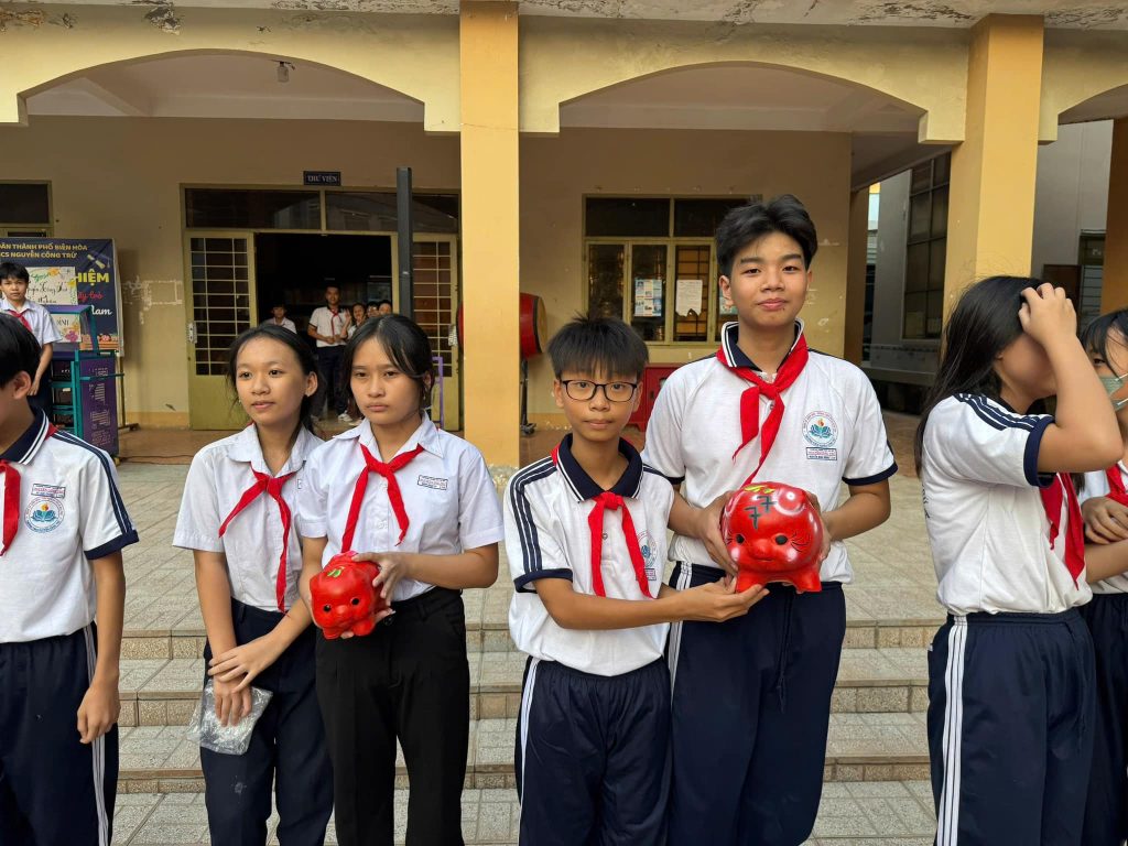 Mô hình tiết kiệm “Nuôi heo đất – Giúp bạn đến trường” của Trường THCS Nguyễn Công Trứ lâu nay đã trở thành một trong những hoạt động thường niên. Ngay từ đầu năm học, nhà trường đã phát động phong trào đến toàn thể cán bộ giáo viên và các em học sinh. Qua đó mỗi chi đội, lớp được cấp một chú lợn đất và kêu gọi các đội viên, học sinh tham gia với tinh thần tự nguyện, giữ gìn, chăm sóc lợn đất của lớp mình qua hình thức tiết kiệm tiền ăn sáng, quà vặt. Sau thời gian triển khai thực hiện mô hình “Nuôi heo đất – Giúp bạn đến trường”, số tiền thu được từ heo đất sẽ được gửi về các lớp để Giáo viên chủ nhiệm hỗ trợ cho các bạn học sinh có hoàn cảnh khó khăn.