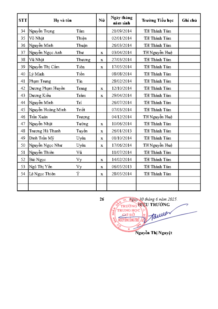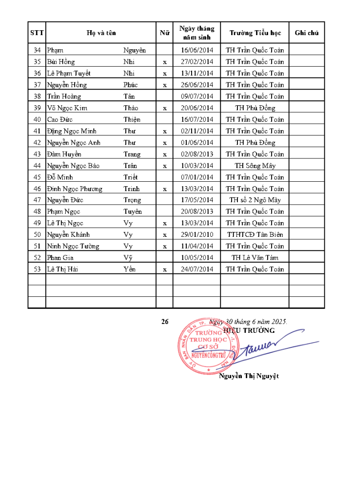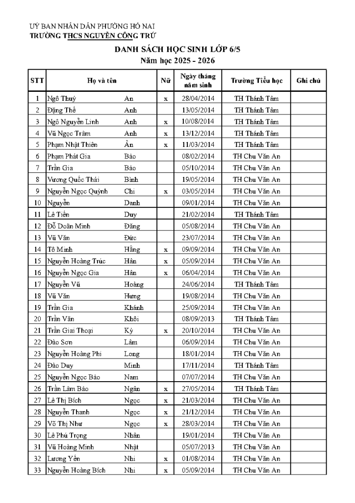 Trang chủ > Hoạt động văn hóa nhà trường > DANH SÁCH HỌC SINH LỚP 6 NĂM HỌC 2025 – 2026 DANH SÁCH HỌC SINH LỚP 6 NĂM HỌC 2025 – 2026 Ngày đăng: Tháng 7 9, 2025 *Lưu ý: Học buổi sáng: lớp 6/12 Học buổi chiều: Từ lớp 6/1 đến lớp 6/11